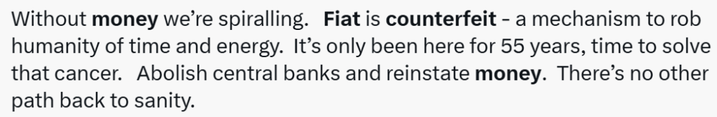 None of this should be construed as a defense of central banking, the Federal Reserve, or the monetary hijinks that wreck lives and economies. Fiat money is virtually always unsound, relatively speaking. It is fragile and subject to manipulation. A long chain of precedent suggests that every fiat issue is inevitably destined to evaporate. Yet none of that makes it counterfeit. Soundness and authenticity are not the same thing. Confusing them weakens an otherwise strong critique and hands defenders of fiat money an easy technical rebuttal. And if fiat money truly is counterfeit, why burden yourself with it? I will happily take delivery of as much of your “fake” money as you are willing to part with.